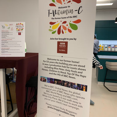 A 'pop-up' juice bar was installed on-site, and a range of juices were provided with titles featuring BBC inspired puns such as 'Very Mary Berry'.
